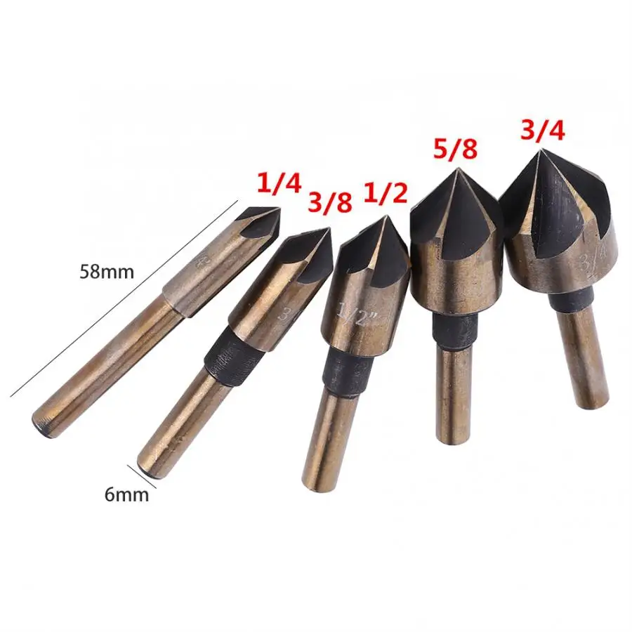 1. There are 5PCs chamfer of 82°, which is used in carpentry, locksmith, automobile, metal processing.