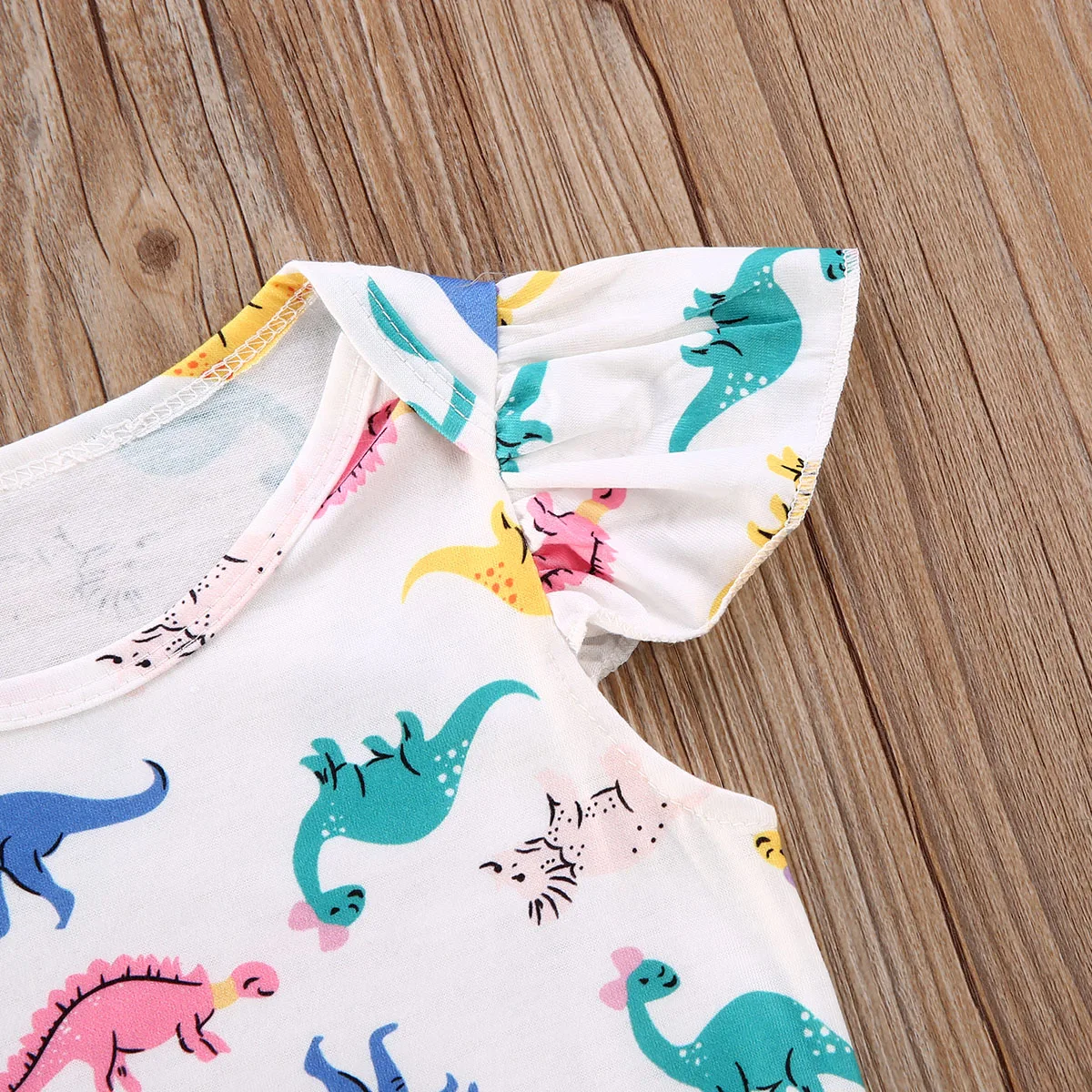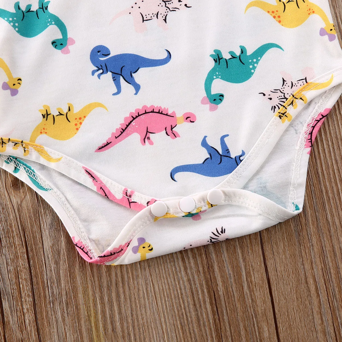 Летняя одежда для малышей; Милый комбинезон с рисунком динозавра и оборками без рукавов на пуговицах; Комбинезон