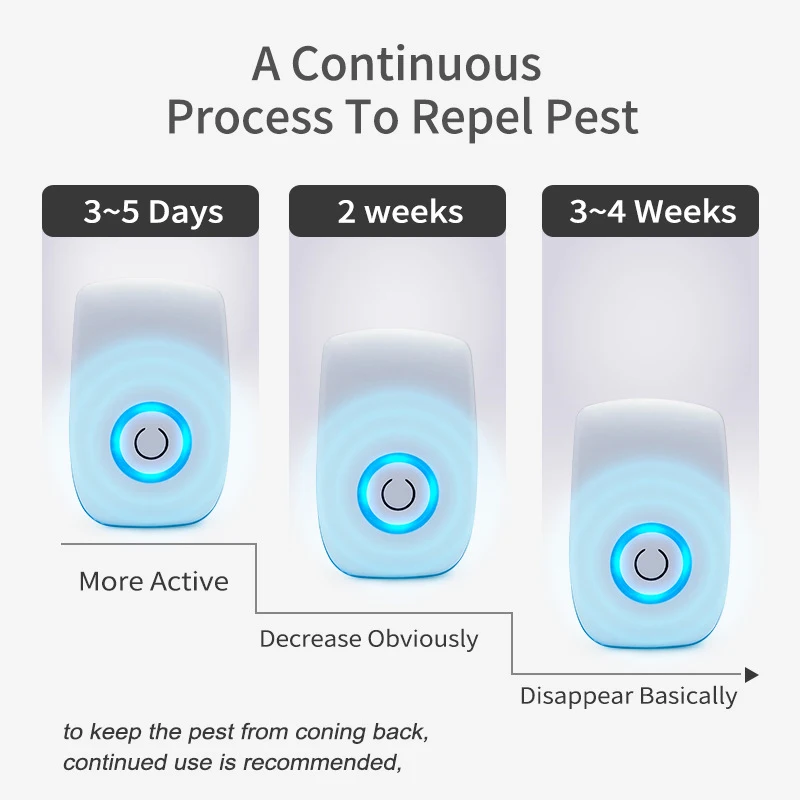 4. В первые несколько дней использования, это нормально для любой активности, например, мышей и вредителей, значительно увеличиваться. Поскольку крысы и насекомые, скрывающиеся в гнезде, были атакрованы ультразвуком и электромагнитными волнами, они скрылись от своих оригинальных мест;