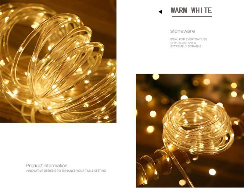 7 м/12 м светодиодные уличные солнечные лампы, веревка, трубный светильник, гирлянда, праздник, Рождество, вечеринка, Солнечный сад, водонепроницаемый светильник, украшение