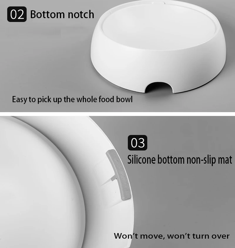 Научное Кормление Здоровый образ жизни 15 ° угол научный дизайн Дизайнерские точки продаж Избегайте проблем с пищеварением позвоночника из-за длительного приема пищи и паха Нижний вырез Легко подобрать всю миску для еды Нескользящий коврик с силиконовой подошвой Не двигается, не переворачивается Стиль: двойной умывальник Применение: все домашние животные Материал: АБС-пластик + Поликарбонат
