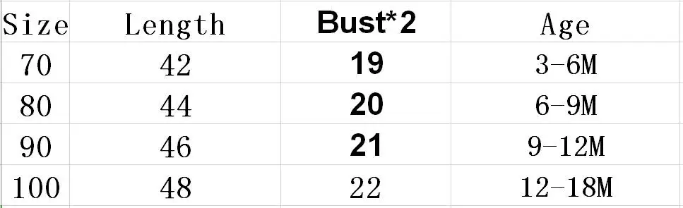 Material: CottonSize Chart: