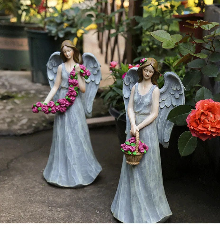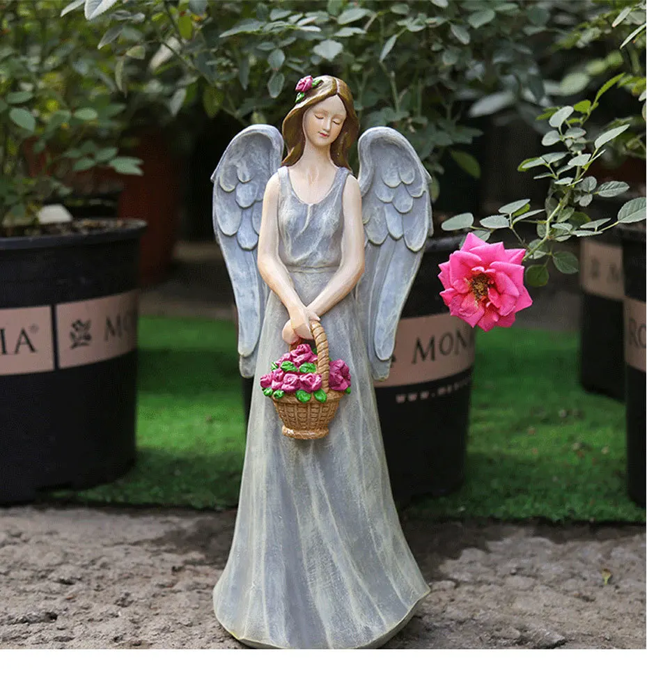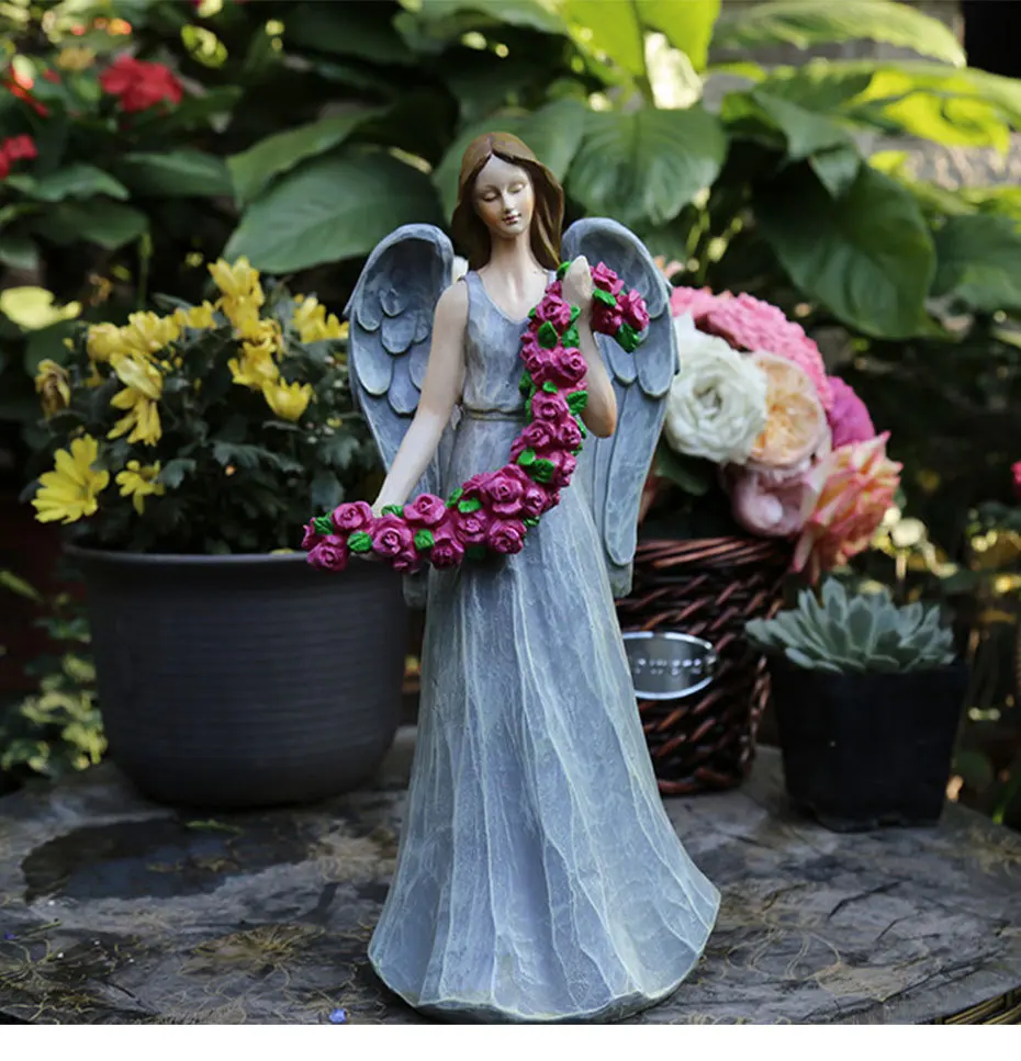 Nordic Creative Angel Flower Fairy Resin Sculpture Decoration Garden Living Room Garden Decoration Gardening Decoration Supplies