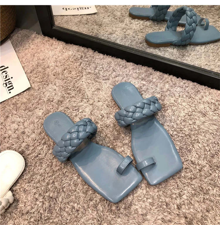 Модные женские шлепанцы; Летние туфли; Женские Кожаные плетеные сандалии на плоской подошве; Женская обувь; Уличные шлепанцы; Женские повседневные шлепанцы