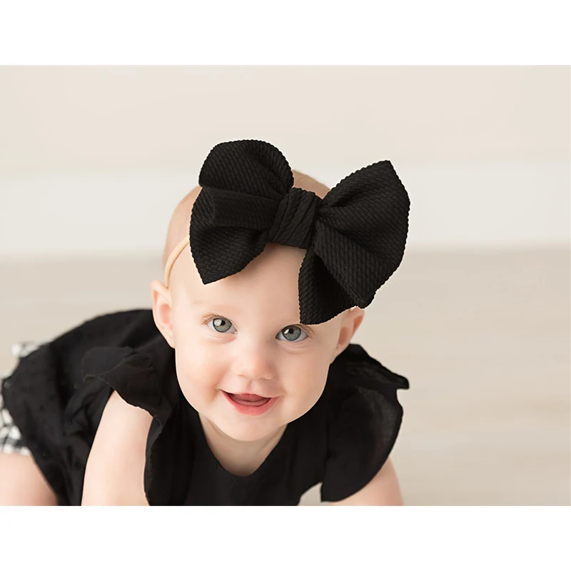 Летняя однотонная шифоновая Детская повязка на голову с большим бантом для волос, эластичная нейлоновая лента для волос для маленьких девочек, подарок для новорожденных, аксессуары для волос