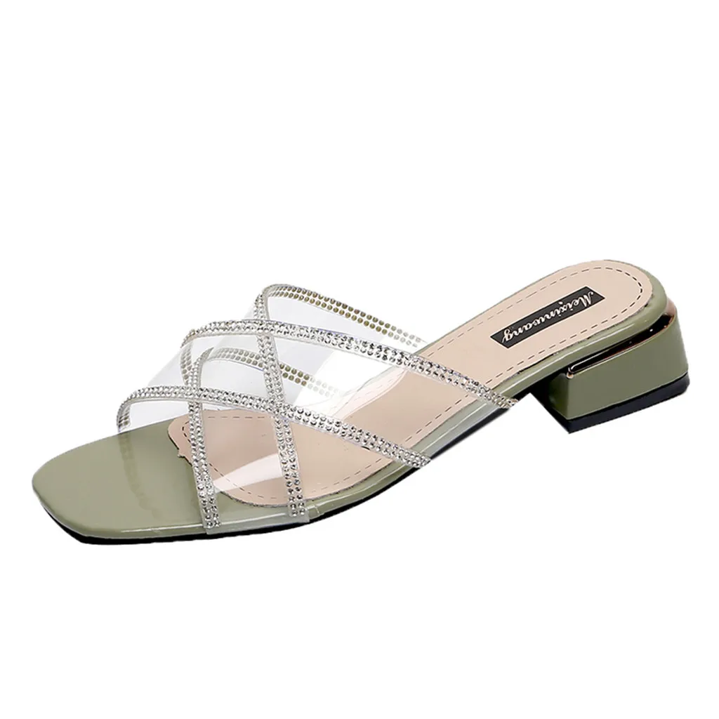 Женские летние шлепанцы на высоком каблуке со стразами; Прозрачные сандалии с перекрестными ремешками