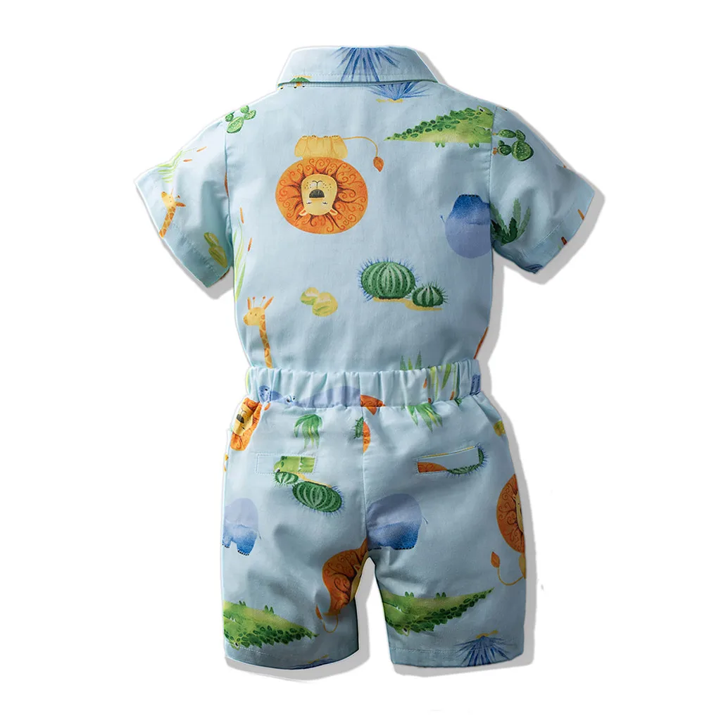 Модные летние топы с рисунком для маленьких мальчиков + шорты, комплект одежды из 2 предметов