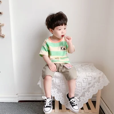 Спортивный костюм для детский свитер; Одежда для маленьких мальчиков летние хлопковые полосатые комплекты топ и шорты conjunto, с милыми лисами, niña ropa niño 2, комплект из двух предметов, комплекты одежды