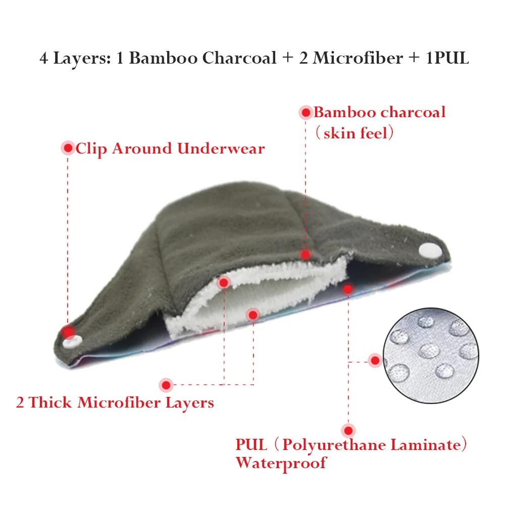 -Тканевая менструальная прокладка можно стирать в машине и сушить, температура воды ниже 40 ℃.