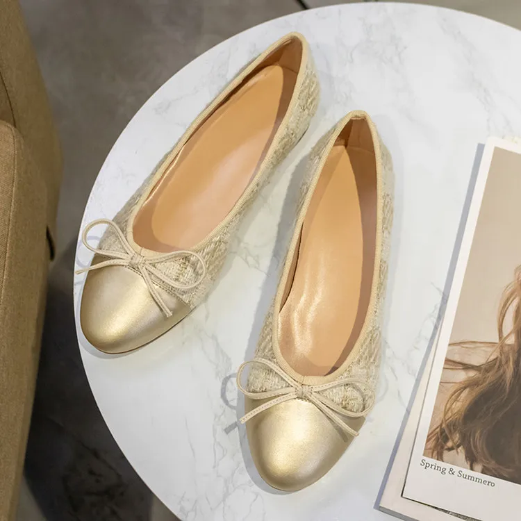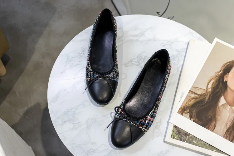 Балетки на плоской подошве; Женские балетки из натуральной твидовой ткани; Два цвета; Балетки с круглым носком и бантом; Модная женская обувь на плоской подошве; Женская обувь на плоской подошве; 2020