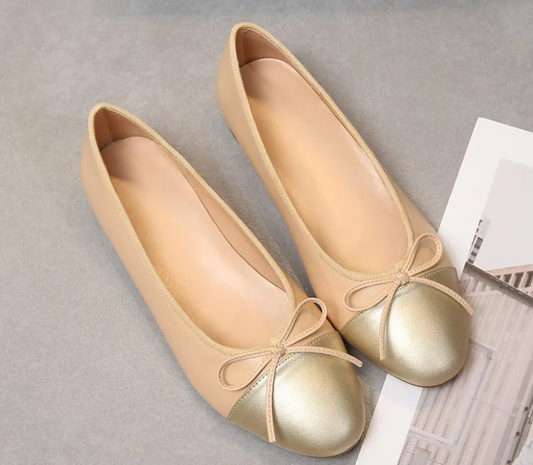Высококачественные двухцветные туфли на плоской подошве, классический стиль, различные контрастные материалы, подходят для различных комбинаций, подходят для путешествий всех типов. Верх изготовлен из высококачественной ткани, которая чувствует себя комфортно. Кожаный Галстук-бабочка украшен носком. Это модно и легко носить. В этом изделии используются различные высококачественные ткани, приятные на ощупь, гладкая и нежная текстура, дышащие и удобные. Используйте высококачественную подкладку и стельки, чтобы уменьшить усталость, мягкий пот и не пахнет ногами, подходит для длительной ходьбы без усталых ног. Простая погоня и очаровательная небольшая круглая головка придают вам уникальную красоту для зрелых женщин. Эти туфли на плоской подошве удобны и не устают. Подкладка из овечьей кожи; Нескользящая износостойкая резиновая подошва