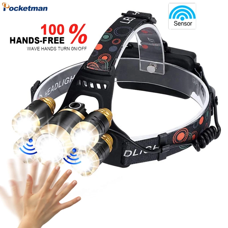 8000Lumens LED Headlight headlamp Body Motion Sensor Head Camping Torch Light Lamp With USB Best For Camping, fishing