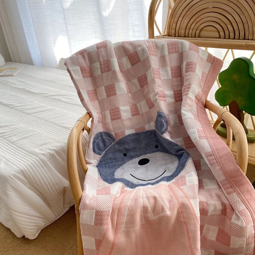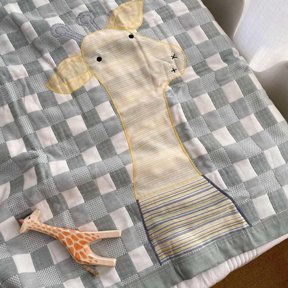 6-слойное хлопковое газовое детское летнее одеяло, Хлопковое одеяло для кондиционера, детское одеяло с жирафом и медведем, 120x150 см