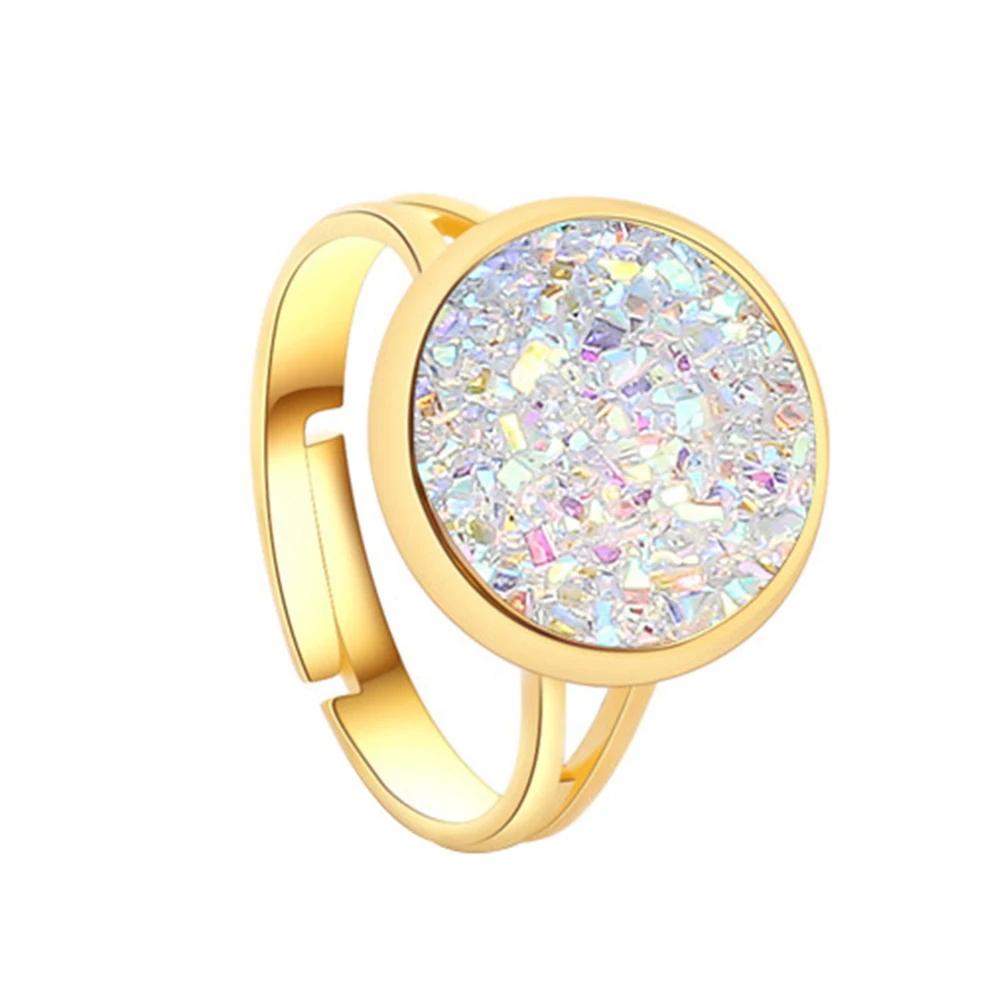 Модные женские круглые радужные друзы с открытым пальцем кольцо регулируемые вечерние ювелирные изделия подарок