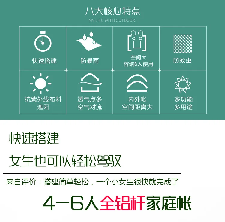 支撑杆上有挂灯勾,方便挂露营灯之类哦