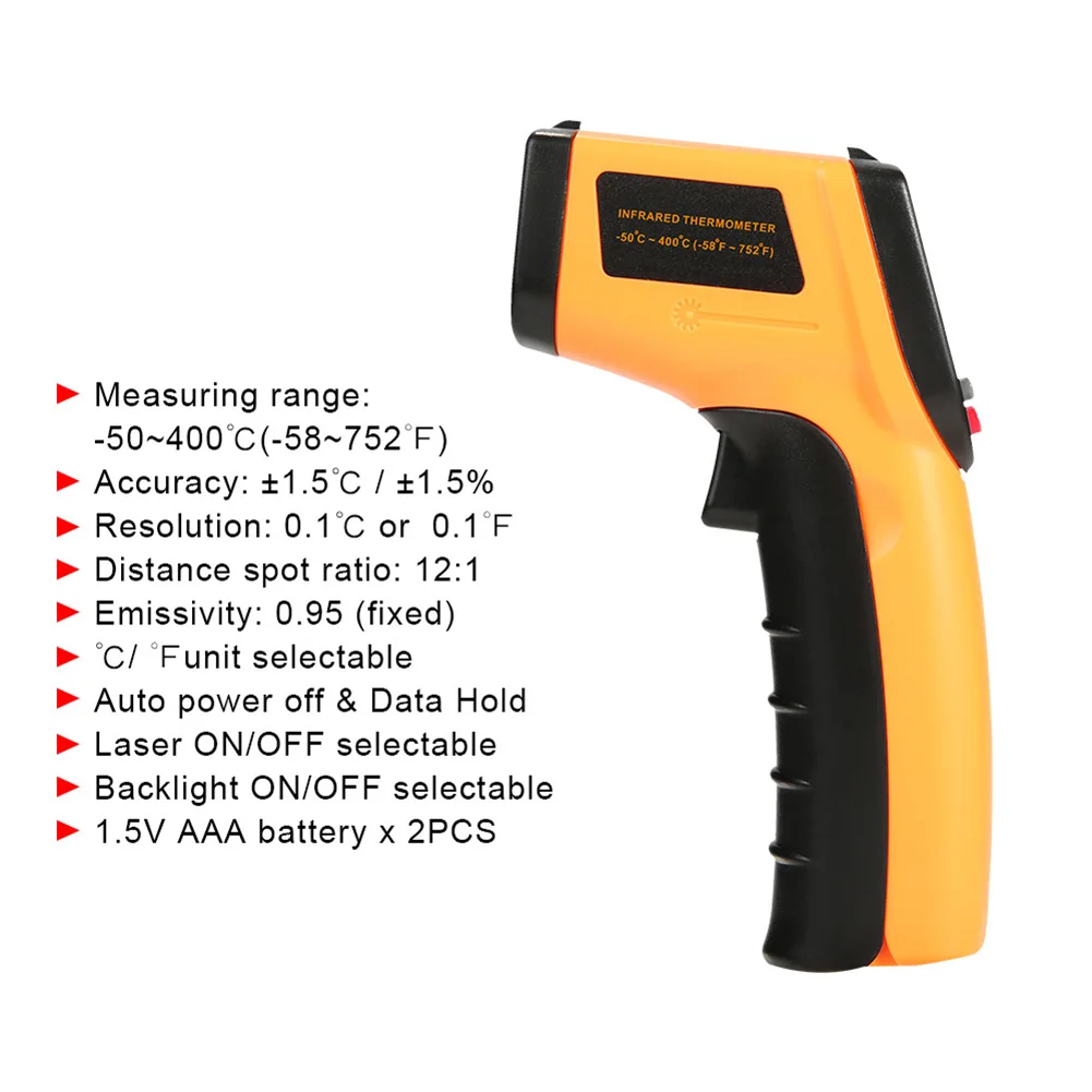 50 400 ℃ Бесконтактный цифровой инфракрасный термометр пирометр для дома