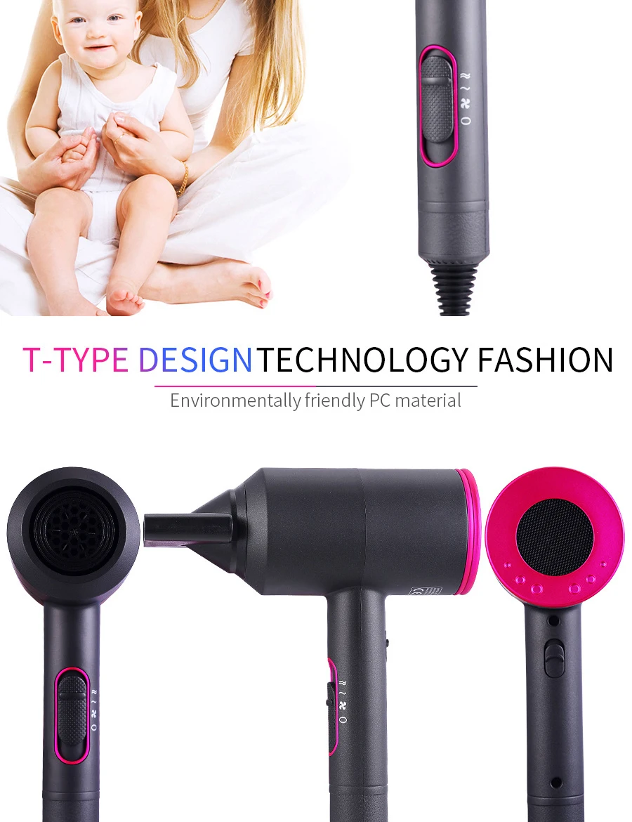 3 настройки тепла, 2 скорости и один крутой настройки Профессиональный фен для волос Передовые технологические дизайн Мощный Фен с мотором переменного тока 1800-2000 Вт Равномерное распределение тепла Эргономичная сбалансированная и тихая производительность Высушите волосы равномерно и быстро 2,5 м профессиональный шнур Холодный и горячий кнопка Устройство защиты от перегрева
