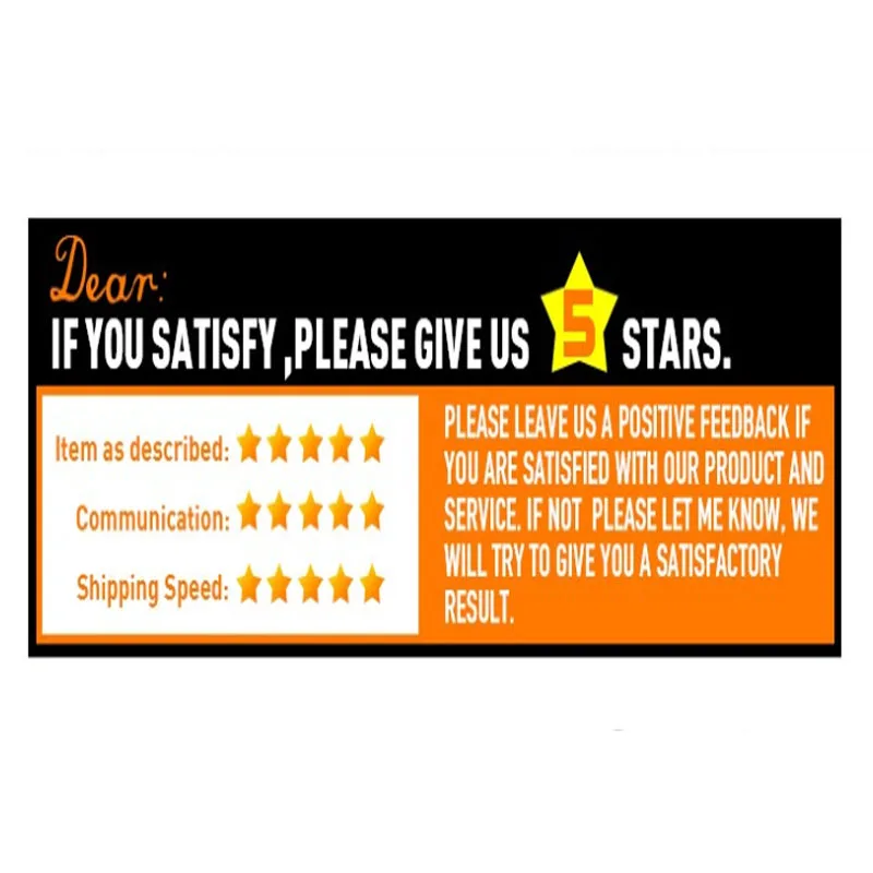 Информация о возврате товара Перед возвратом товаров, пожалуйста, подтвердите обратный адрес и способ доставки с нами. После того, как товар будет передан компании-перевозчику, пожалуйста, отправьте нам почтовый идентификатор. Как только мы получим товары, мы вернем деньги или ОБМЕНЯЕМ их. Отзывы Мы зависим от удовлетворенности наших клиентов, чтобы добиться успеха. Поэтому Ваше удовлетворение и положительные отзывы очень важны для нас. Пожалуйста, оставьте положительные отзывы и 5 звезд, если вы удовлетворены нашими товарами и услугами. Если вы остались недовольны качеством товара и обслуживания, не торопитесь подтверждать получение товара и писать негативный отзыв. Сначала свяжитесь с нами. Мы сделаем все возможное, чтобы решить любые проблемы и предоставить Вам лучшее обслуживание клиентов. Так что просто свяжитесь с нами!