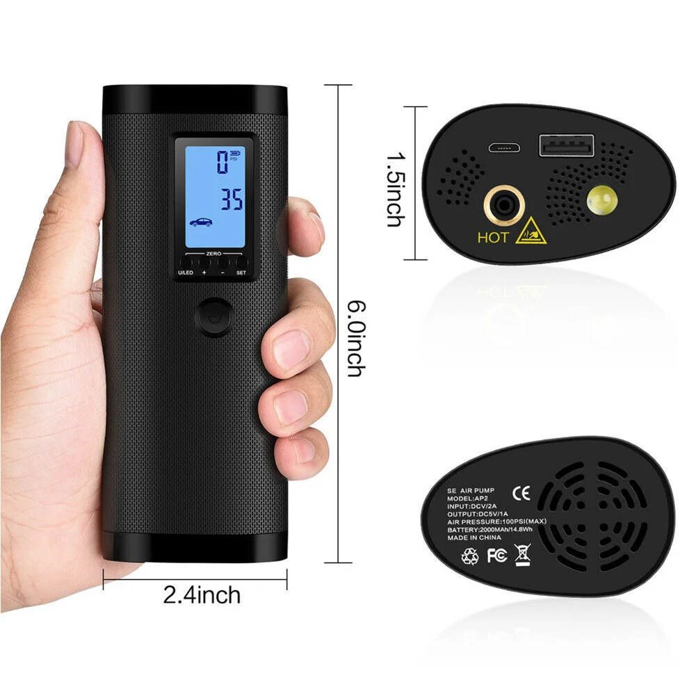 Аксессуары для велосипеда, электрический воздушный насос, ЖК-светильник, дисплей, шина, Надувное устройство с 2000 мАч, Мобильный Внешний аккумулятор, аварийный светильник Мяч для велосипеда мотоцикла