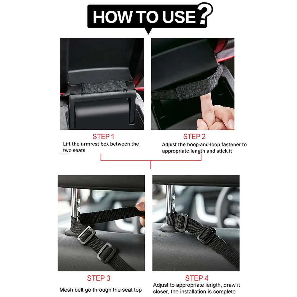 4. Кронштейн для сумки очень простой в монтаже, без штамповки или вставки. Вы можете поместить два регулируемых ремня на подголовник автомобиля.