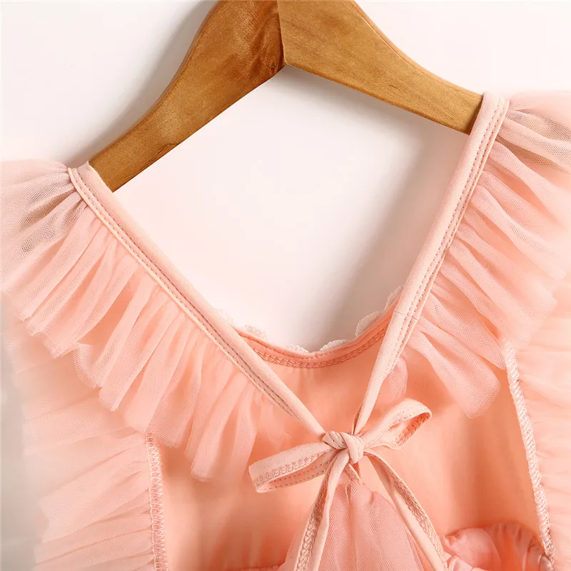 Adorable Kids Girls baby Princess Dress lace Floral print birthday wedding Pageant clothes Sleeveless Tutu Tulle Party Dress