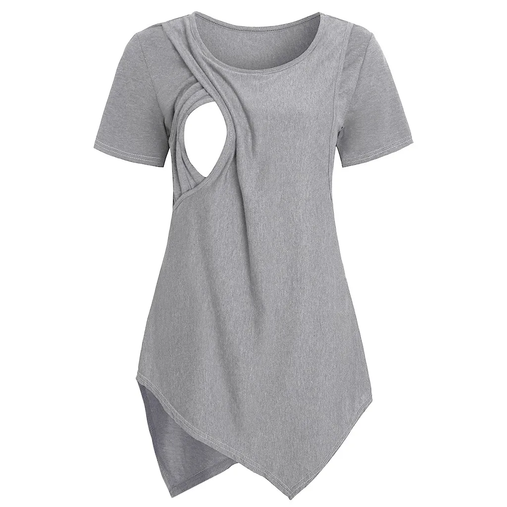 Женская футболка с коротким рукавом и асимметричным подолом для кормления грудью
