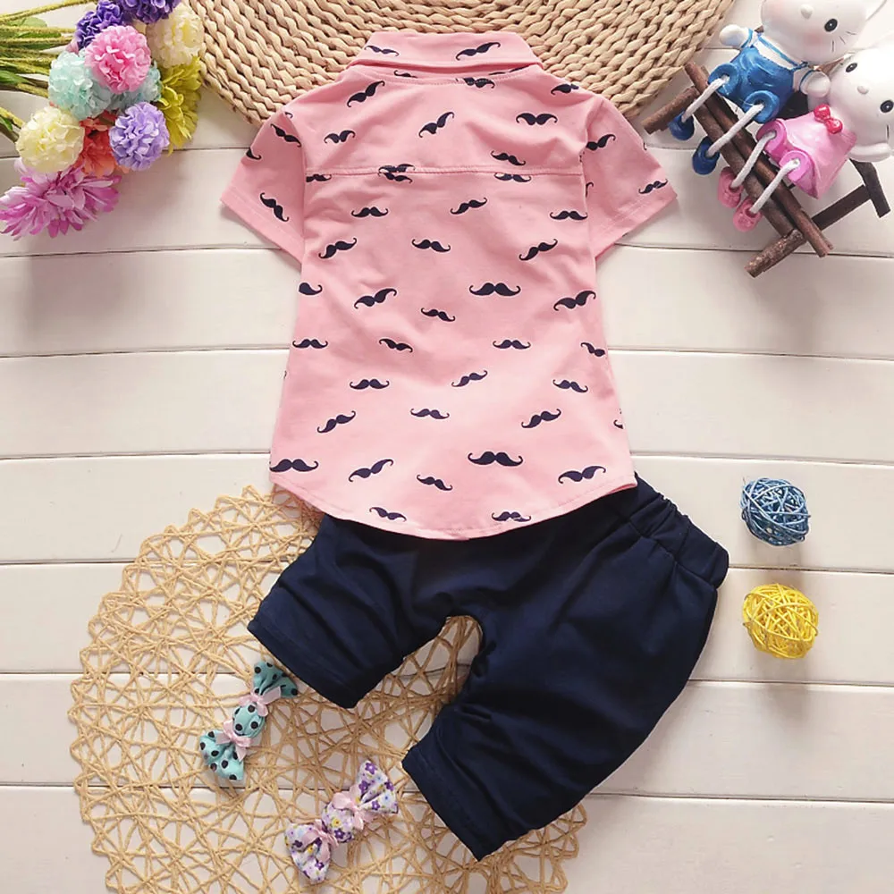 Одежда для маленьких мальчиков комплект из двух предметов, летняя модная футболка с бородой топ + шорты, штаны, комплект одежды