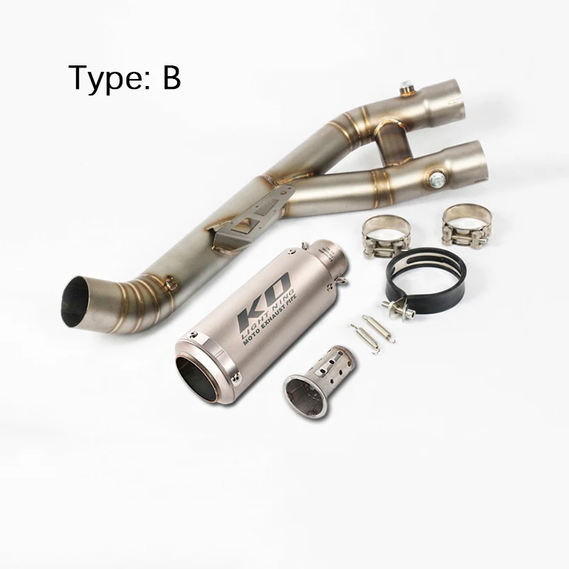 1: выхлопная труба-1 шт. 2: 1 труба средней длины 3: подарок: 1 X Бесплатный дБ убийца 4: подарок: 1 X этикетка или лазерная отметка 5: некоторые аксессуары для установки (крепежный кронштейн, пружина, винт)
