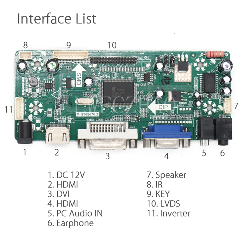 1 × HDMI + DVI + VGA + аудио LCD плата контроллера M.NT686761 × плата инвертора1 × LVDS сигнальный кабель1 × Клавиатура с кабелем