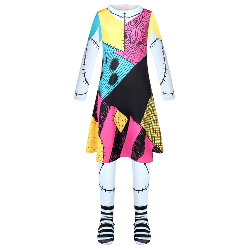 Карнавальный костюм Салли «Кошмар перед Рождеством»; Карнавальный костюм для девочек на Хэллоуин; Карнавальный комбинезон с принтом; Платье для маленьких девочек