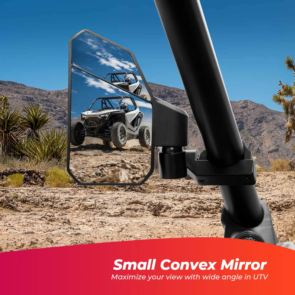 ▶Маленькое выпуклое зеркало увеличивает ваш вид с широким углом в UTV. Помогает вам смоделировать следующее окружение при прохождении, смене полос движения или парковке и держать вас под контролем вашей окружающей среды.