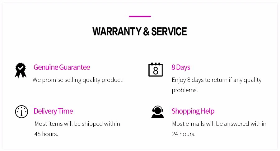 2. Пожалуйста, свяжитесь с нами, прежде чем оставить отрицательный отзывы или открыть спор. Мы сделаем все возможное, чтобы помочь вам решить любую проблему, мы являемся крупным продавцом, пожалуйста, доверьтесь нам.