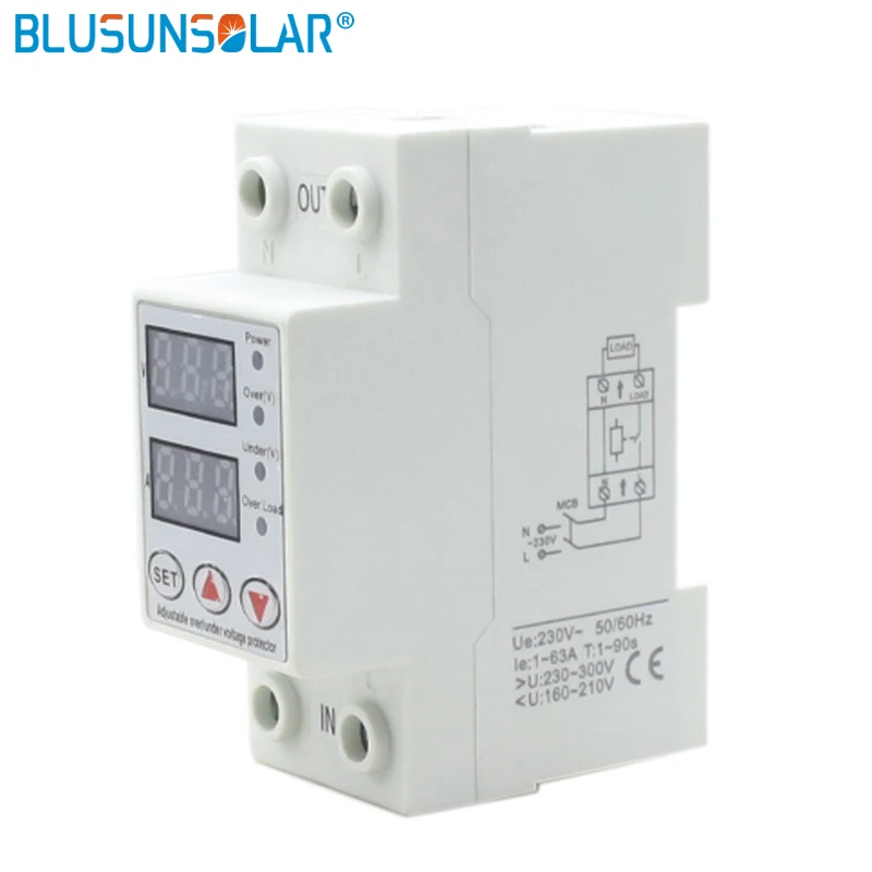 Din-рейка 1-63A 270V двойной дисплей регулируемый над напряжением тока и под напряжением защитное устройство предохранитель реле TOMZN TOVPD