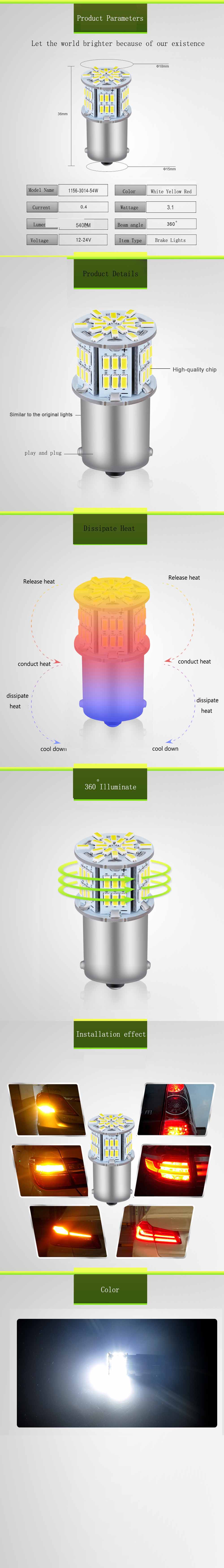 1.High bright LED 1156 BA15S Base Super Bright 54PCS of 3014 SMD LED car bulbs