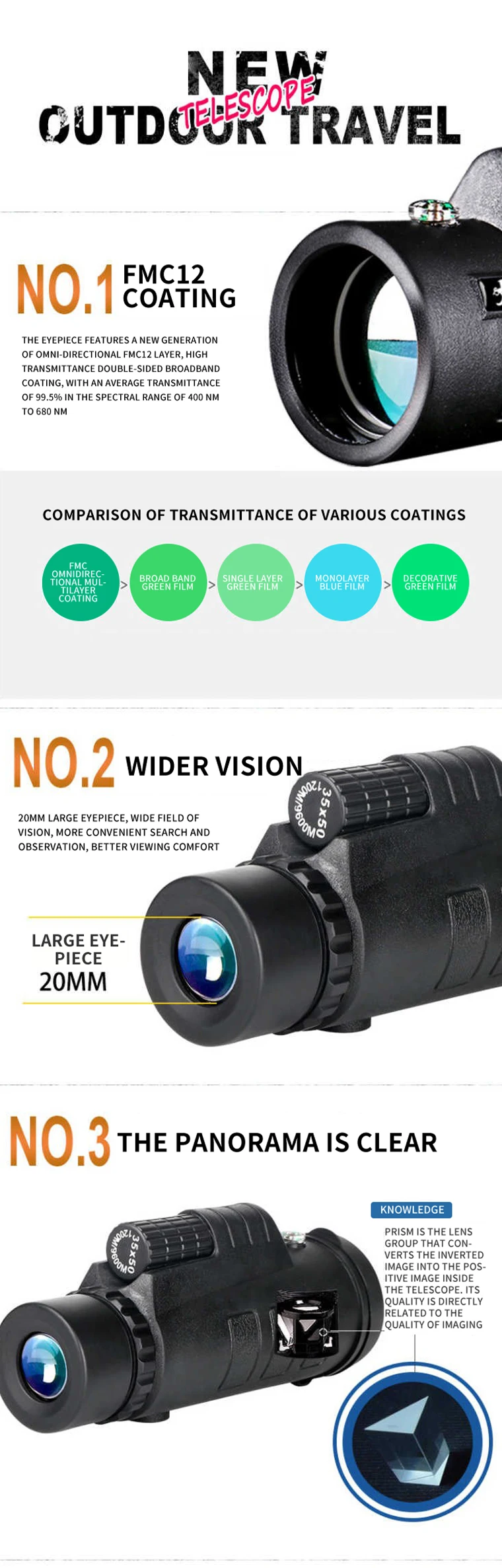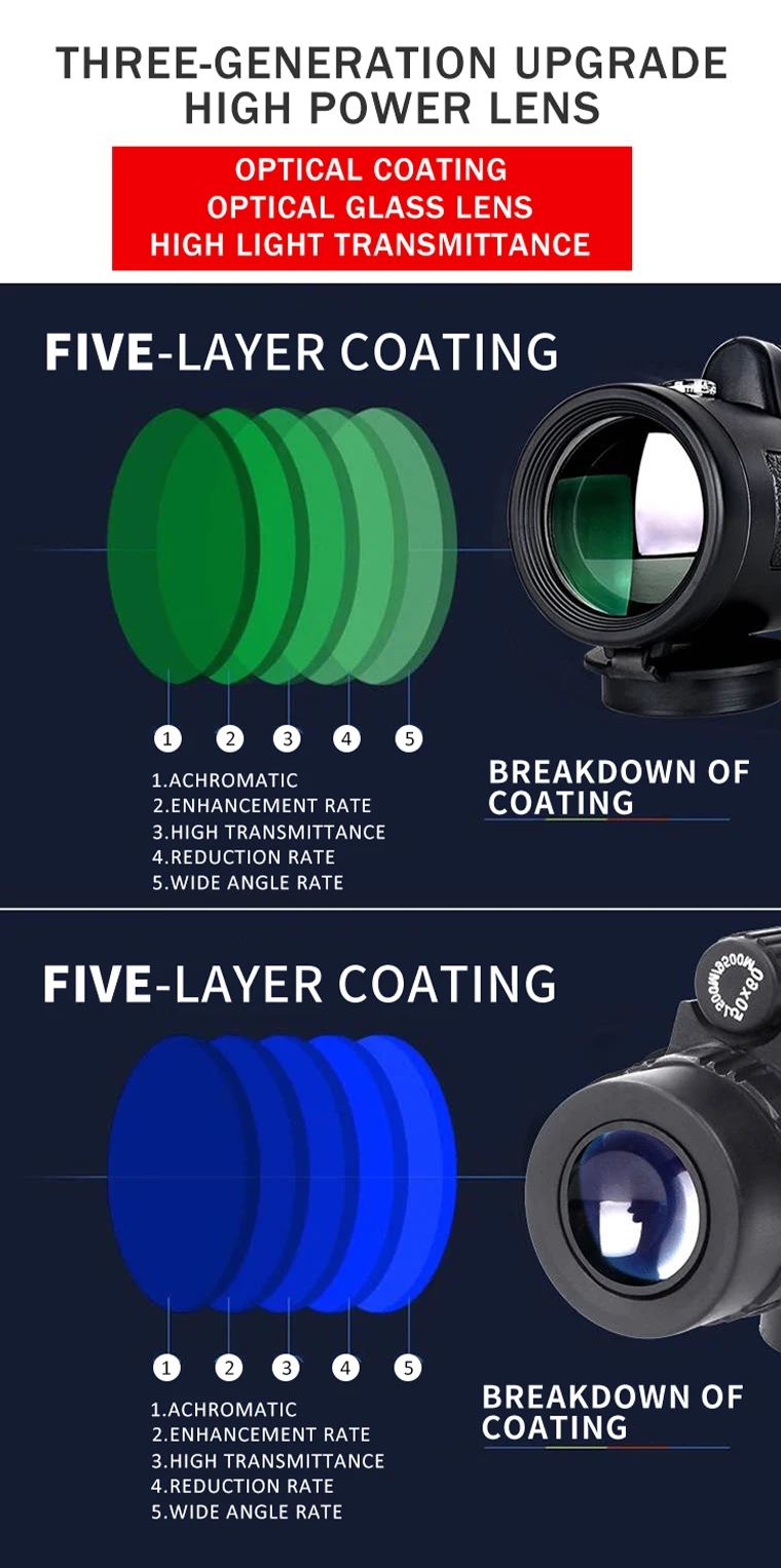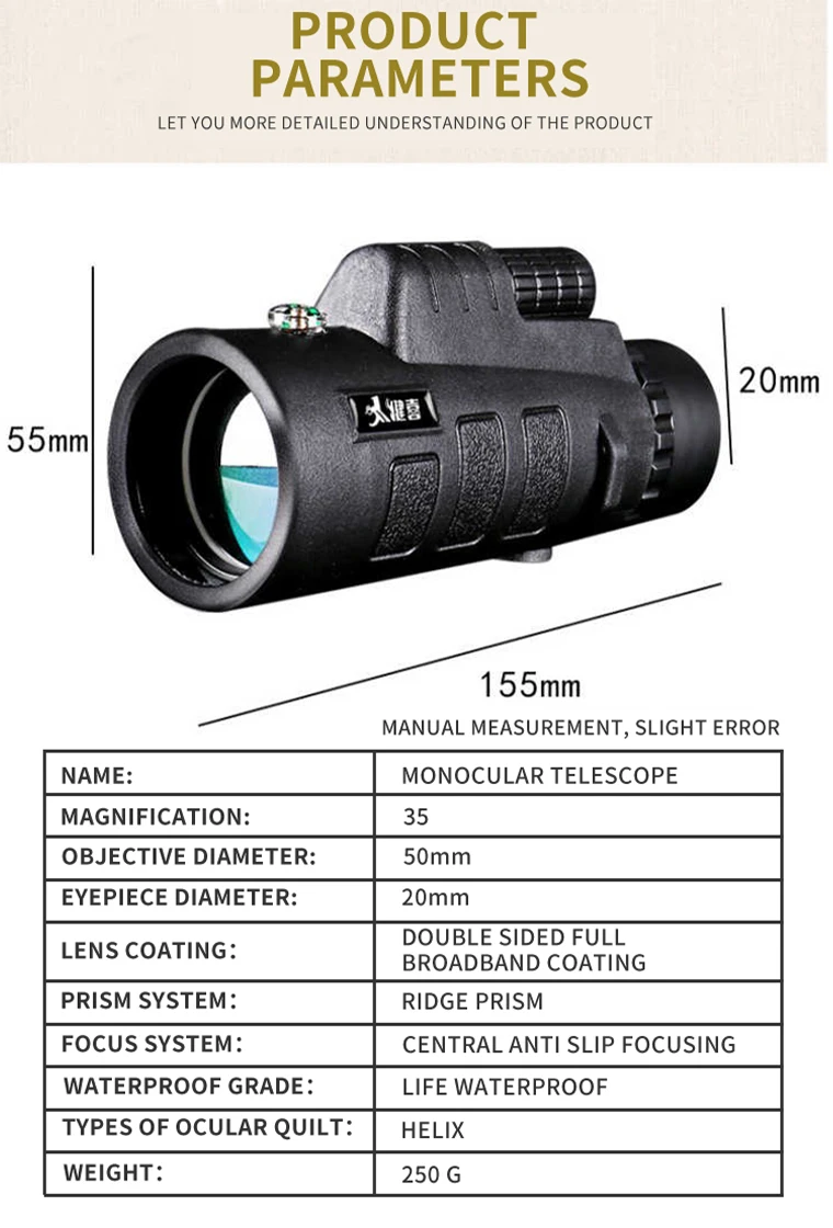 Ntific структура может сделать изображения, которые вы видите дальше, более стереоскопические и более четкие, и это не заставит ваши глаза слишком уставать. Его также можно использовать в плохую погоду. Вес-это очень светильник, и объем маленький и легко носить с собой. В дополнение к подходящей для использования на открытом воздухе, она также подходит для использования в городах. Мы предоставляем профессиональные ручные услуги для решения различных проблем. Если у вас есть другие продукты или индивидуальные потребности, вы можете связаться с нами напрямую.