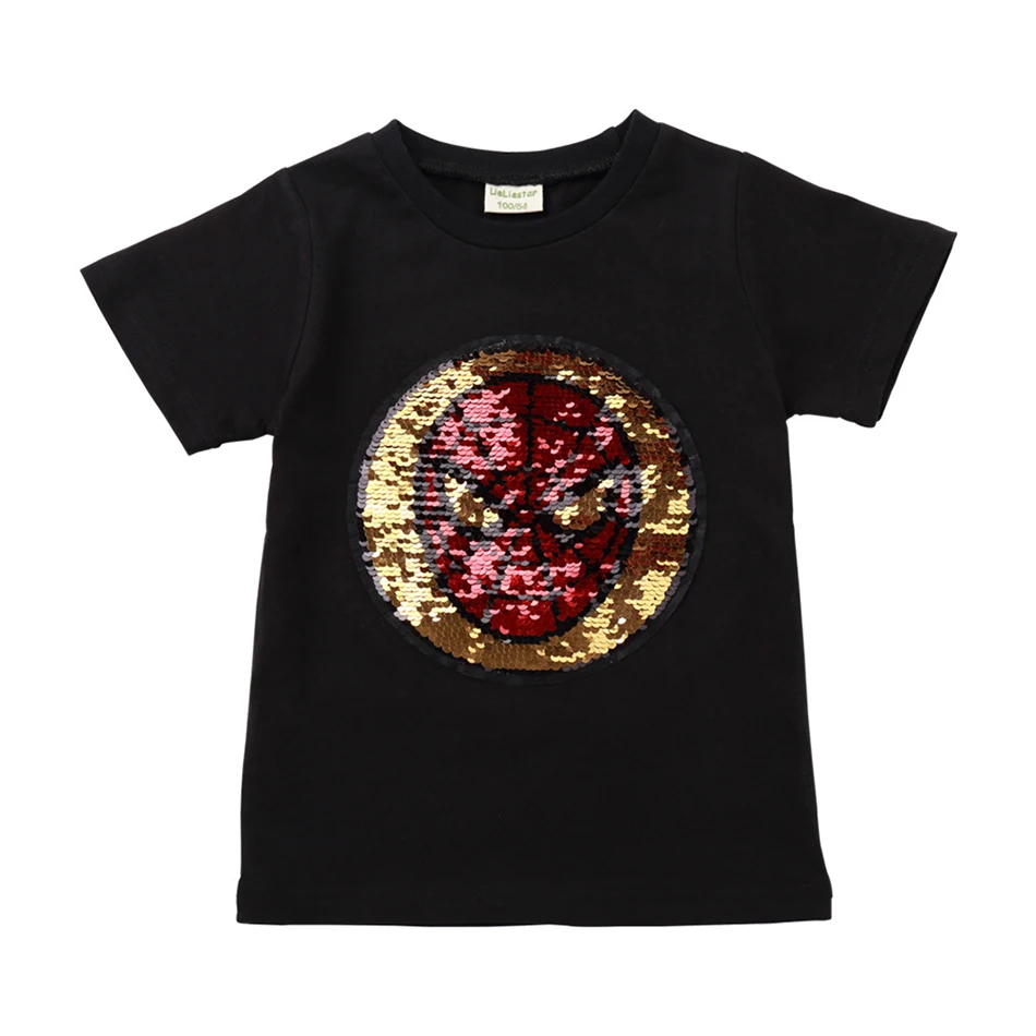 Летняя футболка для мальчиков; Детская одежда для костюмированной вечеринки «Капитан Америка»; Топы с блестками; Футболка; Модная повседневная хлопковая футболка