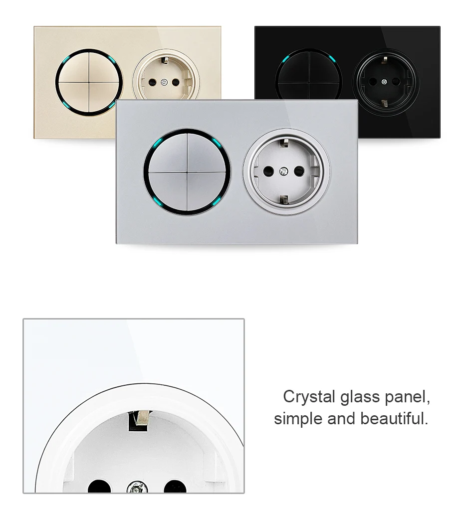 UNKAS 4 Gang 1 Way / 2 Way + EU стандартная настенная розетка включения/выключения выключатель света светодиодный индикатор белая кристальная стеклянная панель 16 А
