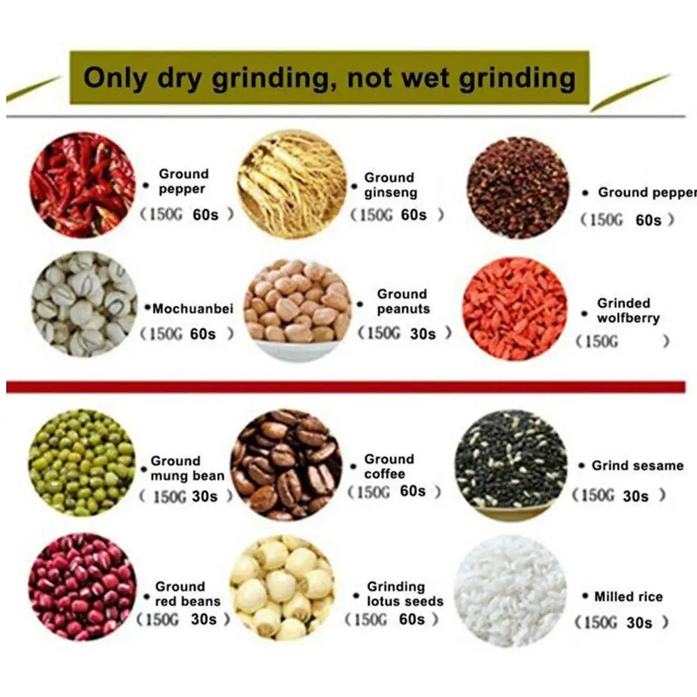 1. Нержавеющая сталь: головка резака из пищевой нержавеющей стали для быстрого и равномерного шлифования. Очень подходит для контроля шероховатости до тонкости кофейных зерен за несколько секунд. Многие китайские травяные лекарства необходимо избегать утюга.