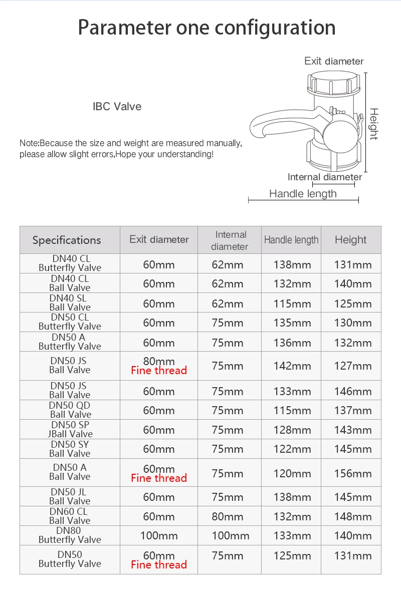 Название: DN50 Клапан-Бабочка Материал: пластик Характеристика: 1. Изготовлен из пластика и алюминиевого сплава, нетоксичный и экологически чистый, безопасный, прочный и долгосрочный для использования. 2. IBC адаптер для прямого подключения к резервуару для воды IBC. 3. С мягкой кислотной стойкостью, щелочной стойкостью, коррозионной стойкостью, высокой механической прочностью, легко открывается. 4. Широко используется в химическом процессе и кислоте, резервуар для хранения, резервуар, Контроль выхода контейнера. Посылка включает в себя: 1 шт. х IBC клапан бака Примечание: Поскольку размер и вес измеряются вручную, пожалуйста, допускайте небольшие ошибки, надеемся на ваше понимание!