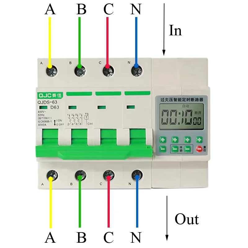 3 фазы 4 провода 380V 32A,63A защита от перегрузки Автоматический выключатель с функцией таймера 1 мин-99h din Тип 380V Таймер переключатель Посылка включает:1 шт. 3 фазовый автоматический выключатель с функцией времениОсобенности:Входное напряжение: 380VACSysterm: 3 фазы 4 проводаАмпер: 32A,63A (покупатель выбирает один при размещении заказа)Диапазон времени: 1 мин-99 чКак использовать:Stpe 1: правильно проводка.Шаг 2: набор tiimeШаг 3: нажмите на ручку Вкл.(Примечание: после шага 4, во время работы, пожалуйста, не устанавливайте время больше)