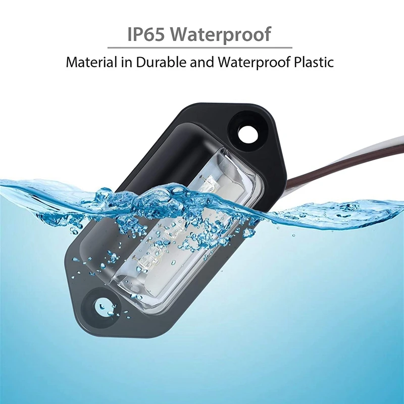 Подходит для 12/24 в автоприцепа: Вольт: 10-30 в, с уникальной формой, прочная конструкция, этот светодиодный светильник не только подходит как светильник номерного знака, но и для различных автомобильных целей, особенно для использования в морских условиях