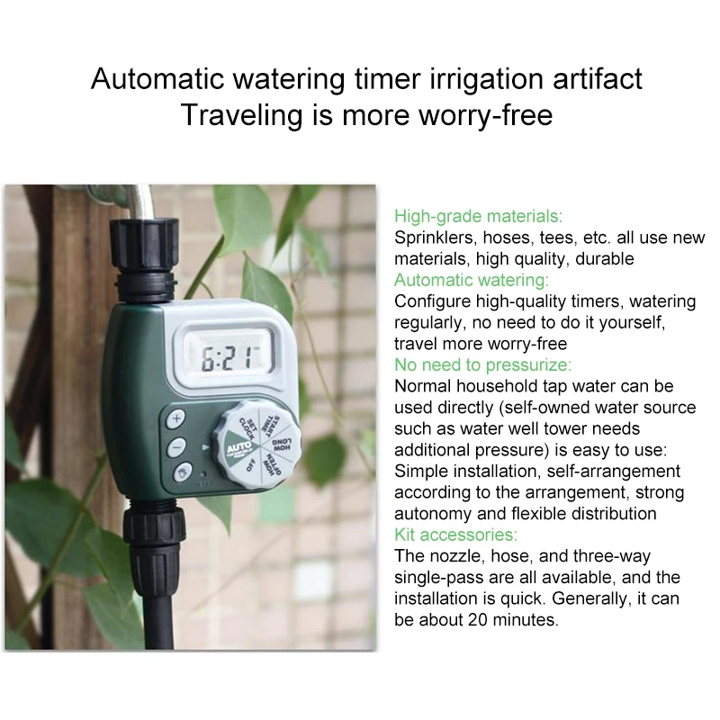 Время полива: минимальное время одиночного полива может быть установлено до 1 минуты, а самое длинное время одиночного полива-300 минут.
