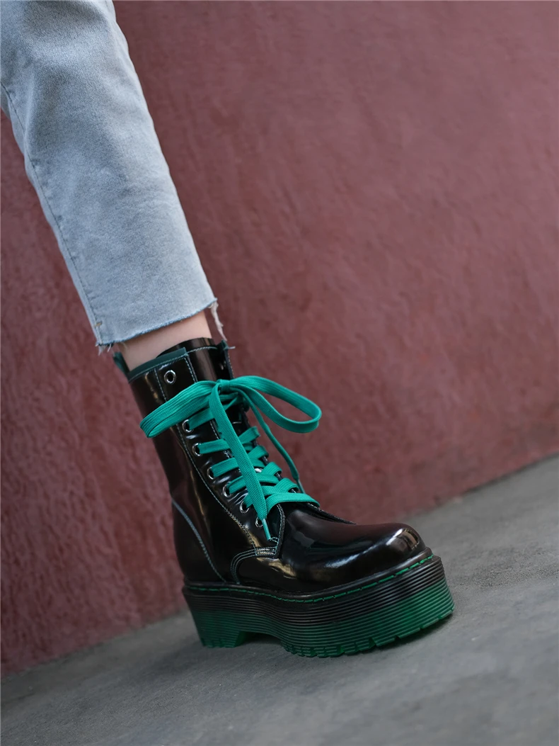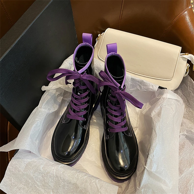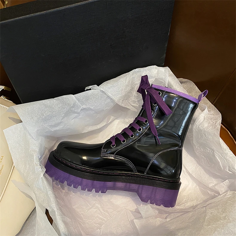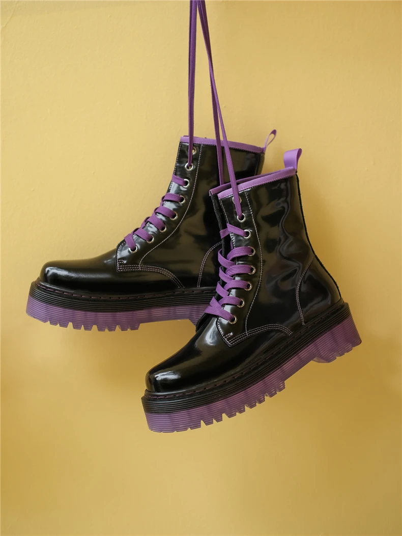 Обувь с круглым носком Шнуровка Верх из натуральной лакированной коровьей кожи Обувь с перфорацией типа «броги» в стиле Дышащая подкладка из свиной кожи в марте-сентябре и меховая подкладка в октябре-Feburary Нескользящая подошва из ПВХ Доступные цвета: фиолетовый и зеленый Ручной работы Хорошее качество