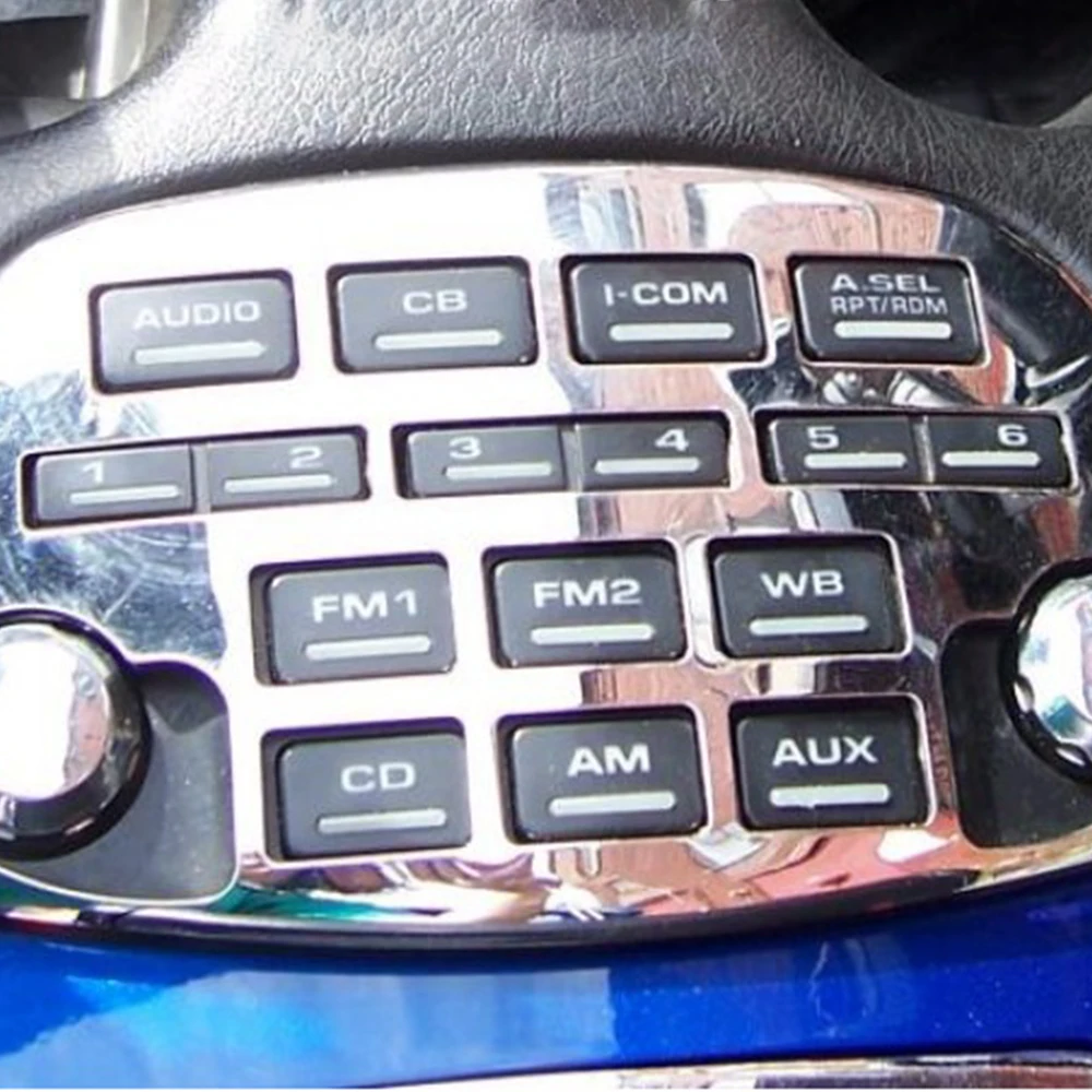 Chrome Radio Accent Panel Decoration For Honda Goldwing GL1800 2001-2011. Radio Panel Accent replaces the scratched up and dull console area with a custom fit chrome accent. Chrome plated, stamped steel accent attaches to the panel securely and easily with double sided tape provided