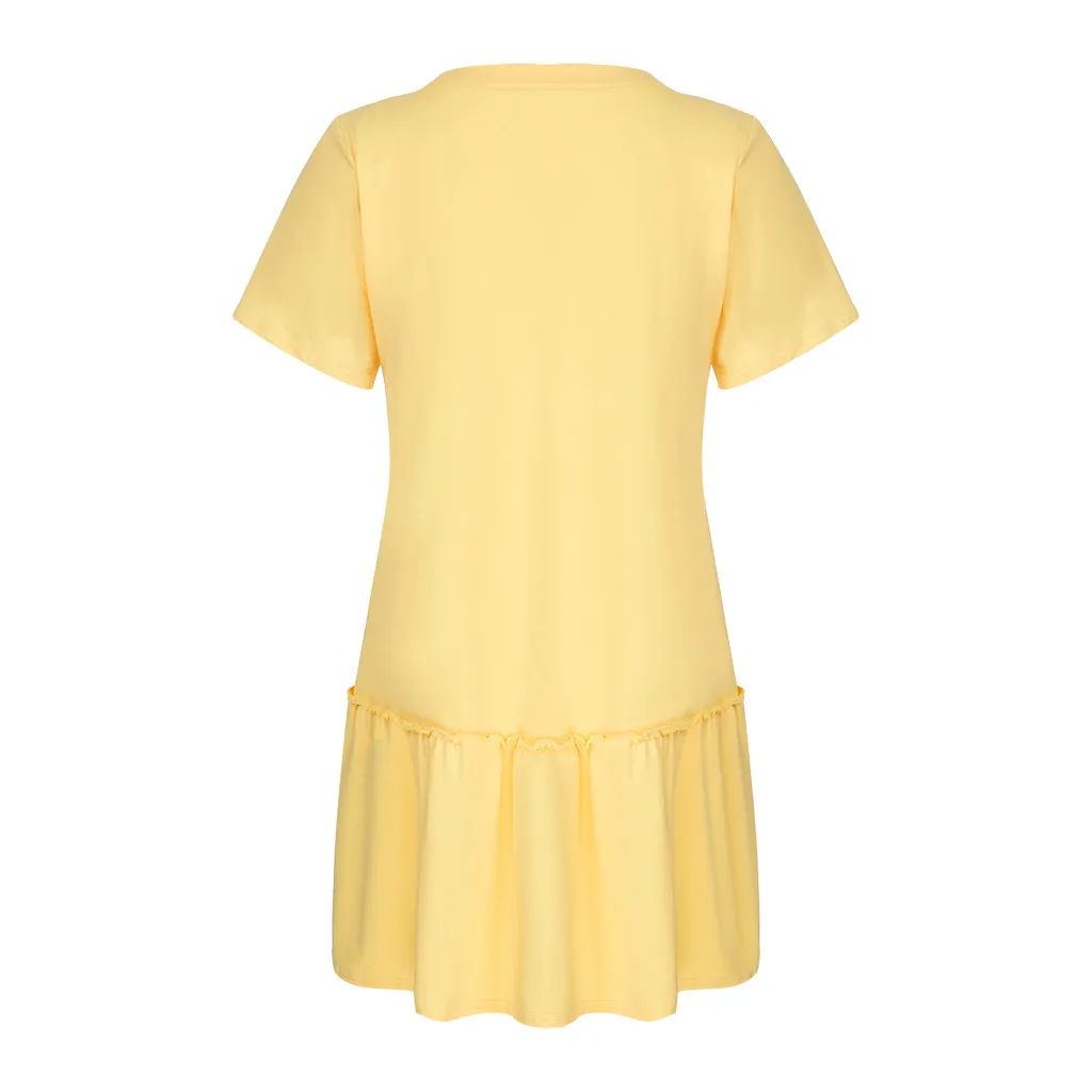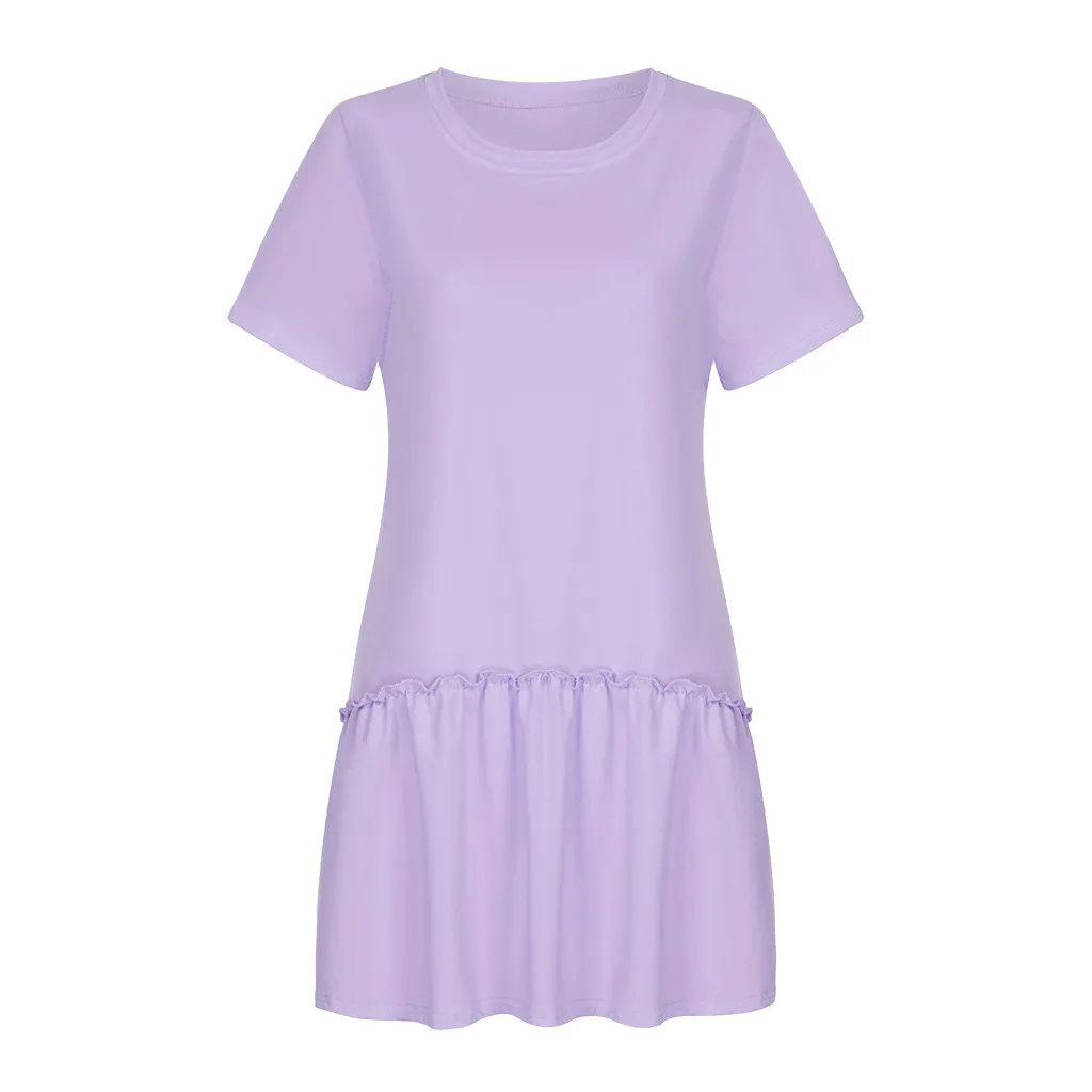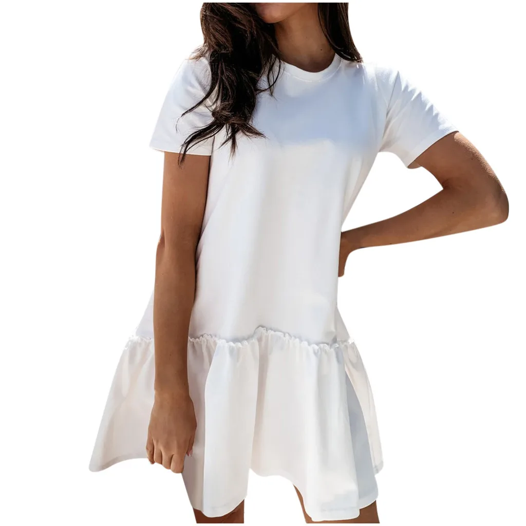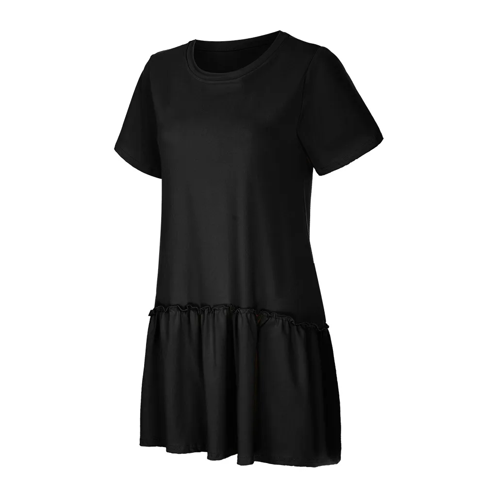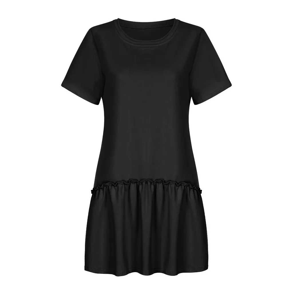 Модное женское повседневное мини-платье с круглым вырезом и коротким рукавом