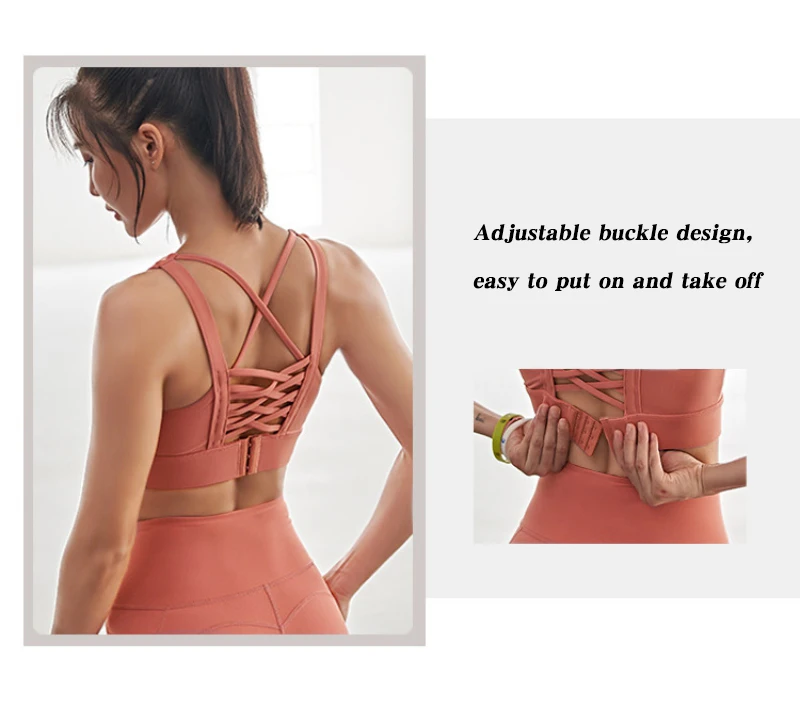 Регулируемый дизайн с пряжкой, легко надевать и снимать, стильный перекрестный ремешок, ударопрочный спортивный бюстгальтер
