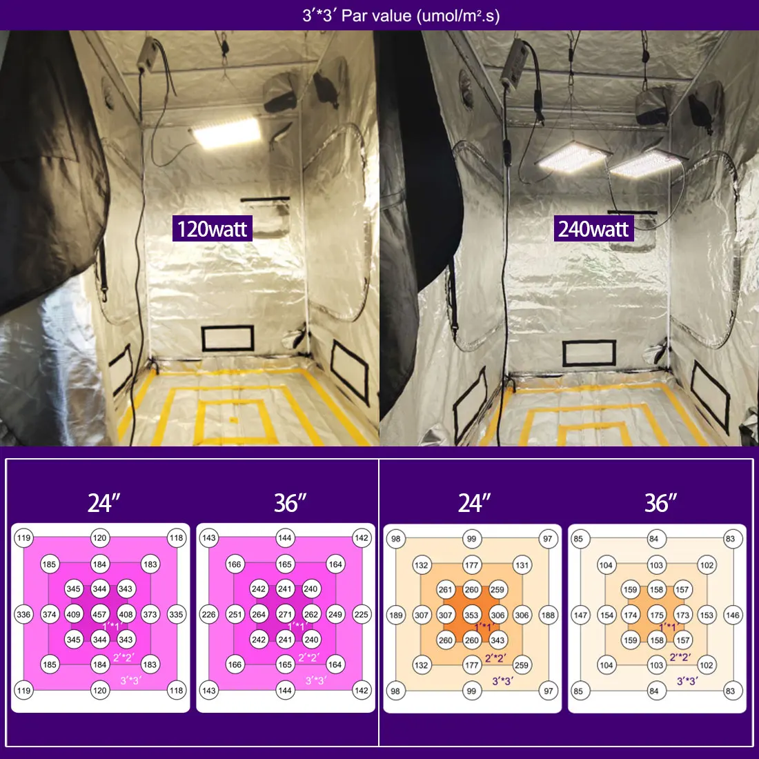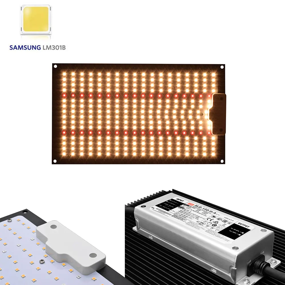 Светодиодный светильник для выращивания квантовой доски; Мощность: 1000 Вт/1500 Вт/2000 Вт Фактическая мощность: 110 Вт/150 Вт/240 Вт Входное напряжение: AC85-270V; Частотный диапазон: 50 Гц-60 Гц; Пар: 2,7 мкмоль/Дж Чипы: чипы SAMSUNG LM301B; Драйвер: бренд Meamwell Driver Цвет светильника: 3000K + Микс-красный 660nm + IR Управление: с затемнением/без затемнения Площадь покрытия: 2,3 ㎡ (высота 1,5 м); Материал: алюминий; Срок службы: >50000 ч