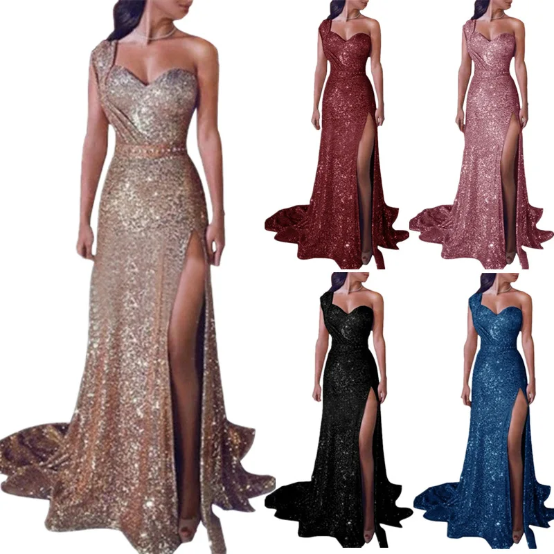 Элегантное Красное длинное платье с открытыми плечами, с разрезом, с блестками, для женщин, сексуальные, вечерние, Клубное, блестящее платье в пол, с блестками, вечернее, шикарное, VestidosUS $13,56
