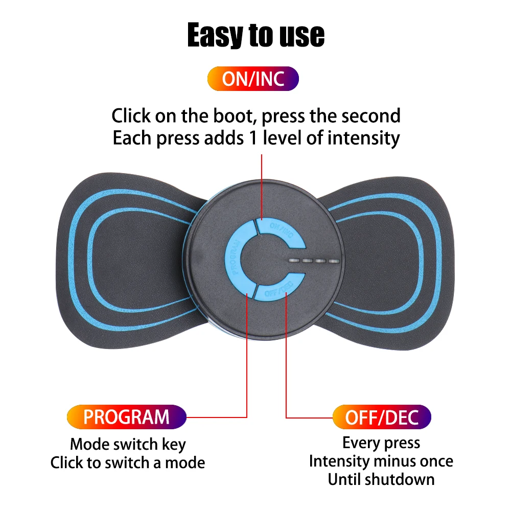 6.Adjust to the massage intensity that suits you. Continue to press ON/INC to increase the intensity and OFF/DEL to decrease the intensity.