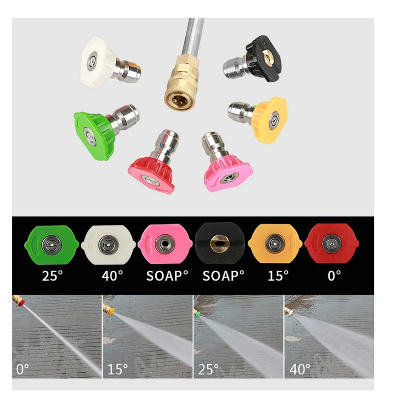 6 наконечников для распылителей-набор различных углов распыления (0, 15, 25, 40 градусов). Выберите различные насадки в соответствии с фактическими потребностями. Идеально подходит для очистки подъездных дорожек, бассейнов, крыш, тротуаров, дворов бассейна, террас, веранд. Они также могут быть прикреплены к пистолетам или палочкам.